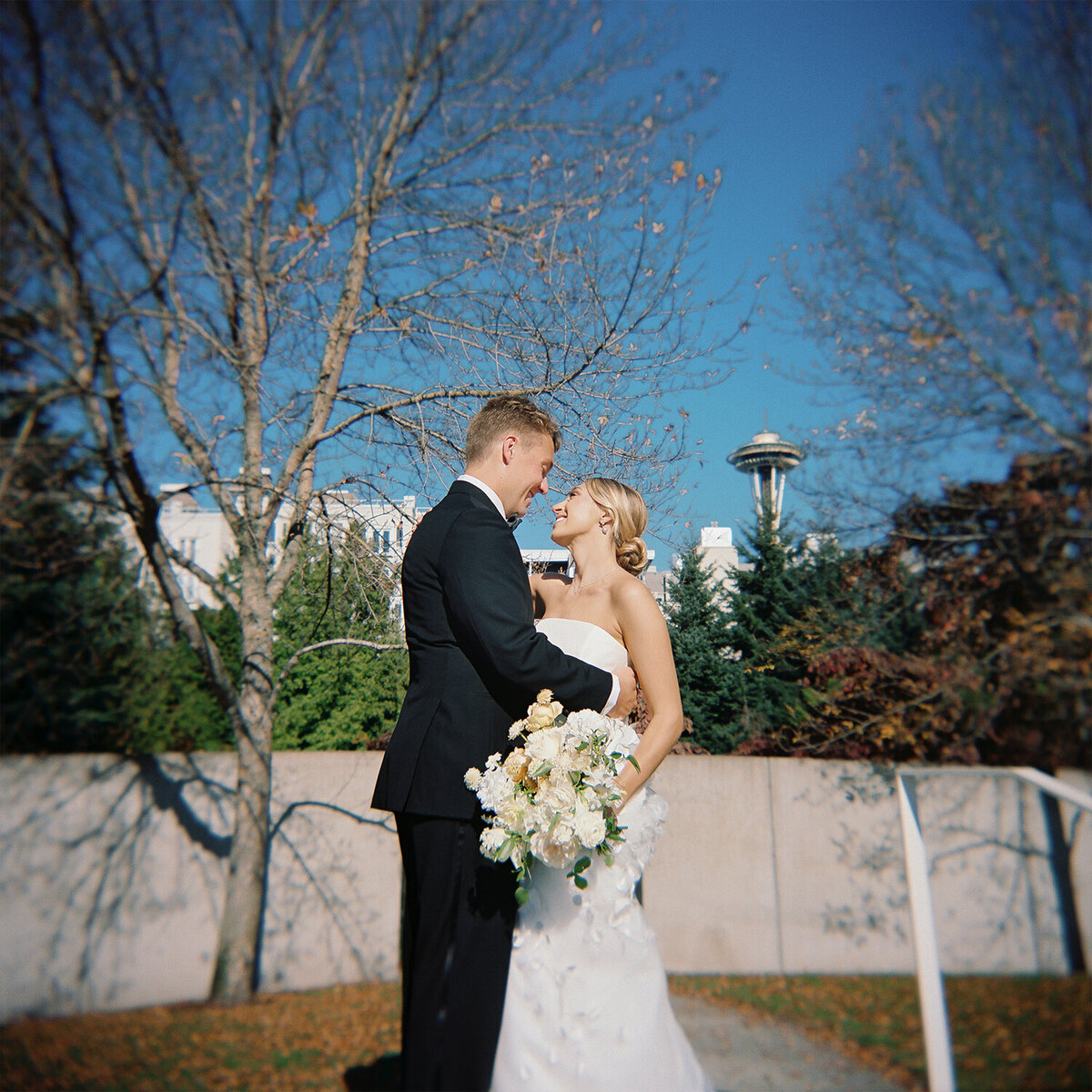 Nestled in the heart of Seattle, the Four Seasons Hotel is one of the city’s most iconic wedding venues. So it’s no wonder Lexi and Connor chose it for their celebration! It was a perfect place to host an elegant party for their many out-of-state and local guests! The couple exchanged vows in a Jewish ceremony steeped in tradition and symbolism. A lush Chuppah with cascading flowers and greenery set the scene, and luminous evening light filled the room. The reception was held in the hotel’s grand ballroom, filled with lush flower installations and soft candlelight.